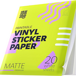 Premium Printable Vinyl Sticker Paper for Inkjet Printer and Laser - 20 White Matte Sticker Paper Waterproof - Durability Adhesive Paper 8.5 x 11, Fast Dry, Holds Ink Well, Great for Cutting Machines
